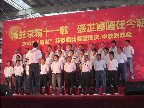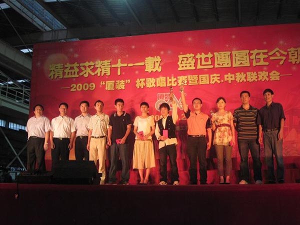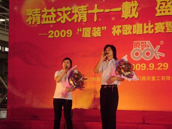 9月29日下午,2009年度“廈裝杯”歌唱比賽在廈裝公司總裝車間舉行。此次歌唱比賽以“精益求精十一載、盛世團(tuán)圓在今朝”為主題,賀祖國(guó)60周年華誕、喜迎中秋、慶祝廈裝成立11周年。公司及各部門從6月份開(kāi)始籌備此次比賽,此次比賽分為集體組和個(gè)人組,集體組(合唱)以部門為單位,最終有6支隊(duì)進(jìn)入當(dāng)天的決賽,個(gè)人組通過(guò)先前的部門推薦及預(yù)賽選拔,最終有11人闖入決賽。
