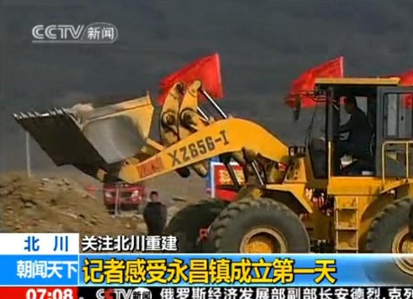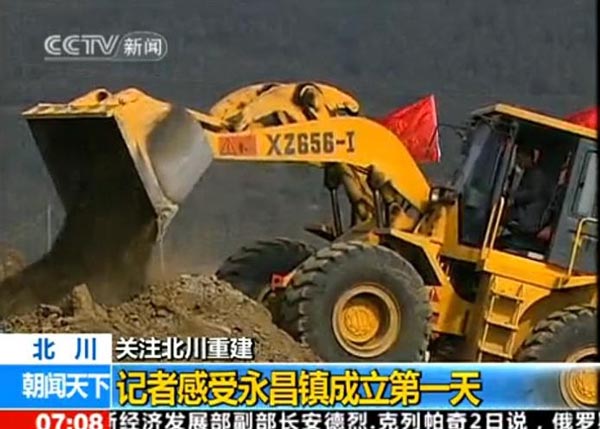 2010年2月3日早7:08分,央視新聞頻道的朝聞天下欄目,播出了汶川地震后第一個異地重建的新縣城---北川縣城所在地永昌鎮(zhèn)黨委、政府正式掛牌成立的報道,目前,北川的各項工程建設(shè)正在如火如荼的進行中,其中在央視的報道中,廈裝XZ656-Ⅰ裝載機正在繁忙的作業(yè)中。據(jù)了解,我司的裝載機在汶川地震后的重建中發(fā)揮了重要作用。