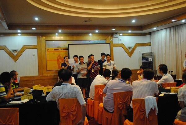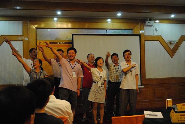 活動(dòng)為期兩天,由“廈裝”公司中高層管理人員及大界公司講師、輔導(dǎo)員共27人參加,培訓(xùn)活動(dòng)在大界公司講師的主持下氣氛異常的熱烈,“廈裝”公司及各控股子公司各級(jí)管理人員帶著“團(tuán)結(jié)互助,開拓進(jìn)取”的思想而來(lái),對(duì)課程要求很快就熟悉起來(lái),并按照培訓(xùn)的要求進(jìn)行分組、選隊(duì)長(zhǎng)、創(chuàng)造隊(duì)歌及隊(duì)手勢(shì)等有趣的活動(dòng)。